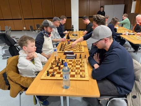 Das war eines der stärksten Teilnehmerfelder, das wir jemals hatten. Mehr als die Hälfte der 15 Teilnehmer kam aus unserer ersten oder zweiten Mannschaft! Unter den fünf Spielern der ersten Mannschaft setzten sich Pascal und David ab, beide beendeten das Turnier dann punktgleich mit nur einer Niederlage bei 11 Spielen - Wahnsinn! Dritter wurde Jérôme mit 8 Punkten und auch der vierte Platz wurde geteilt: Wolfgang und Vasile mit 7,5 Punkten. Ein toller Abend!